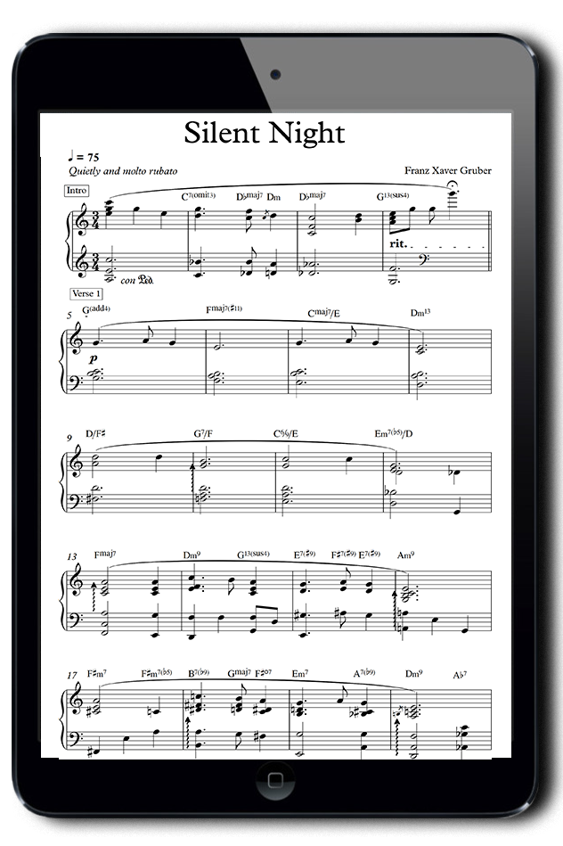 Christmas and jazz are the perfect fit in our opinion. Now you can get quick access to the wonderful world of light jazz piano. Get friends and family excited when they gather around the piano on Christmas day with our version of Silent Night. This is the perfect arrangement for intermediate pianists looking for that authentic sound. The PDF is easy to read and comes with fully notated chord names.