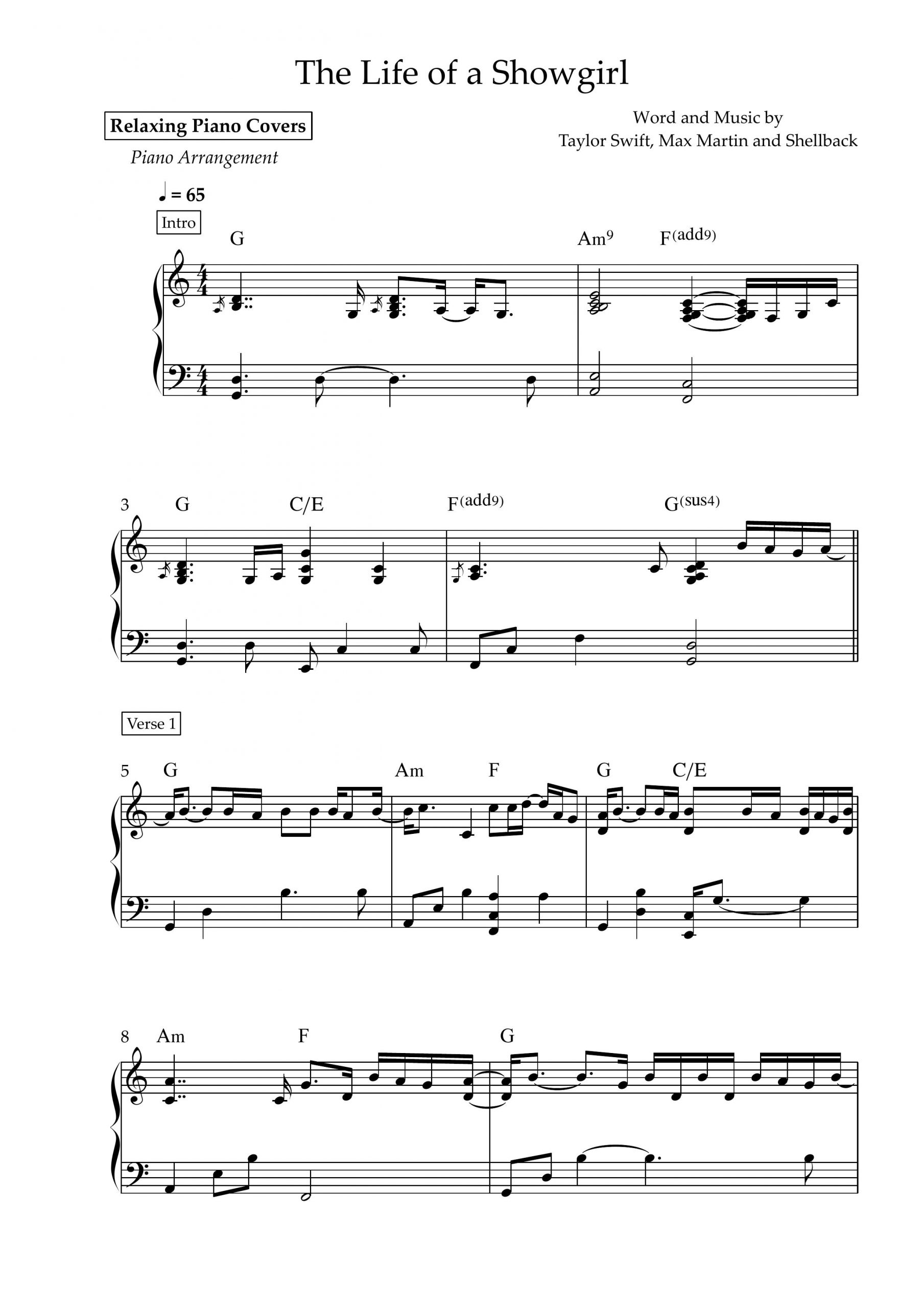 🧡The Life of a Showgirl — The Piano Sheet Music Collection